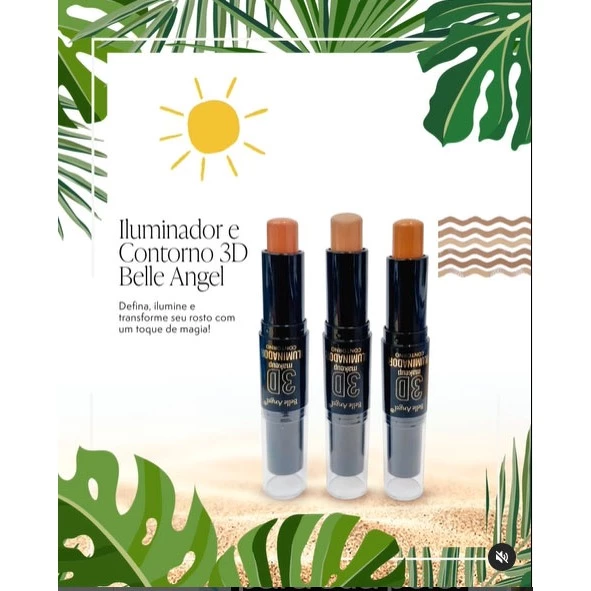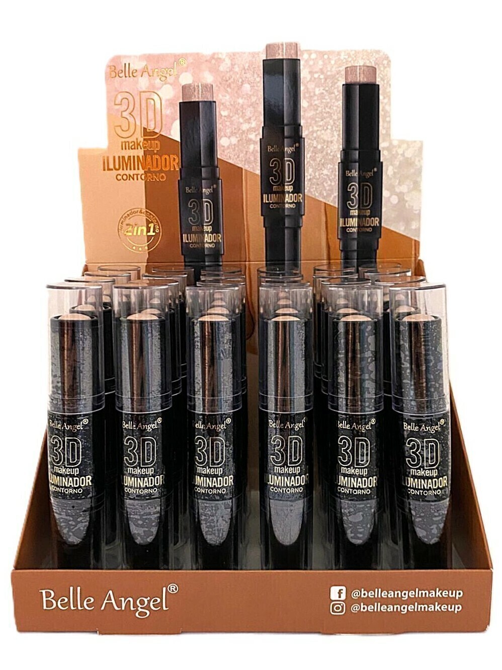 Destaque sua beleza com o Iluminador e Contorno 3D 2 em 1 da Belle Angel, disponível na ZapMake!